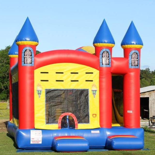 In edition to being a bounce house and slide combo, this unit also is equipped with a small obstacle course and basketball goals!