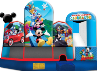 The Mickey Mouse Club House is a vibrant 5-in-1 combo inflatable that delivers bounce, climb, slide, and water play. Designed for young fans, it converts from dry play to wet fun in seconds. Ideal for backyard parties, community events, and rentals. Bright character graphics, easy setup, and multiple play zones keep kids engaged and safe. Perfect for themed birthdays and summer splash days. ๐ญ๐