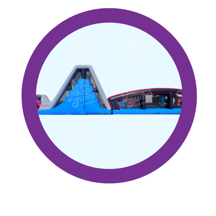 It has a unique non-slip surface that offers riders a safe and fun challenge while racing through the different obstacles, our special non-slip material makes it safe and worry free. This 65 Ft Obstacle Course is a great addition to any event as it provides you with a obstacle course you can use for carnivals and festivals, along with a water slide for those hot Summer days.