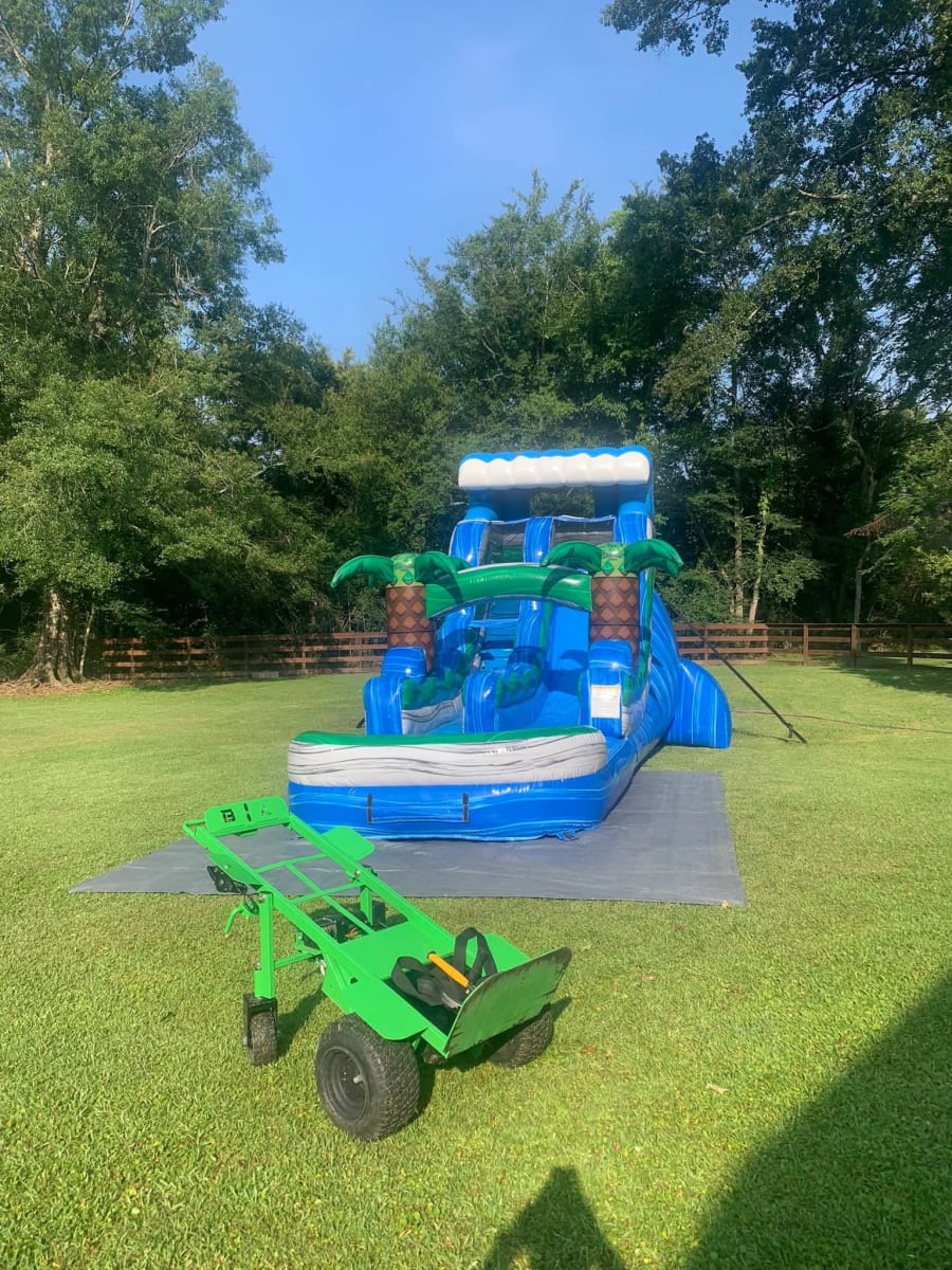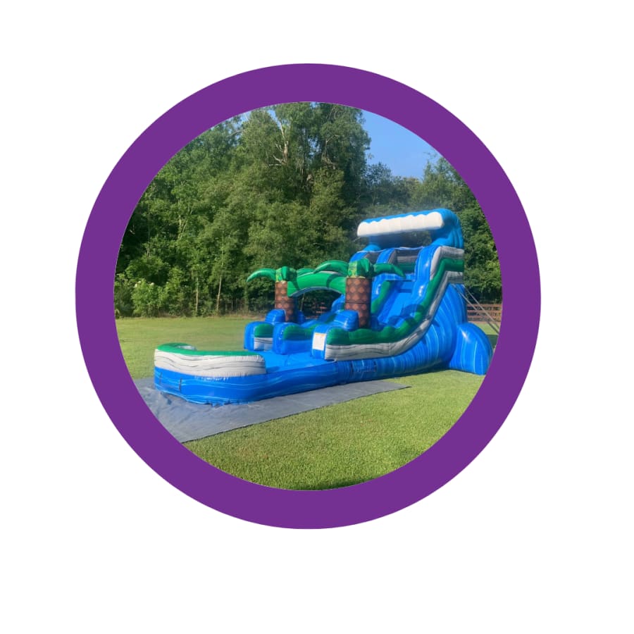 Whether you're hosting a birthday party, neighborhood block party, school event, or corporate celebration, the main service + 16 Ft Blue Tropical Paradise in delivery areas is sure to be the highlight. Watch as guests line up for their turn to make a splash and create lasting memories!
